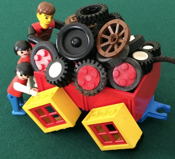 The two little lady pushers are NOT LEGO but something else that was in the big box of plastic stuff…