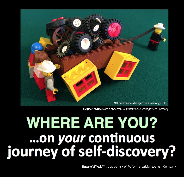 In Gary Loper’s newsletter today, he talked briefly about “The Road to Self-Discovery” and since I have been playing with my Square Wheels images and themes a lot the past two days, since we are re-doing a lot of things and soon to release an update to our popular little Square Wheels LEGO toolkit for simple communications and engagement (Square Wheels Icebreaker, $20), I quickly popped this up.