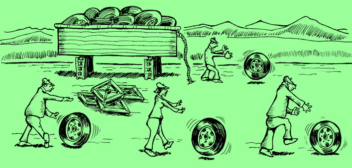 We sell really simple toolkits to use for involving and engaging people in discussions about the things that are not working smoothly and their ideas for improvement. The Round Wheels are generally already in the wagon, and playing with ideas generates the ownership involvement and intrinsic motivation needed to make changes in how things get accomplished;
